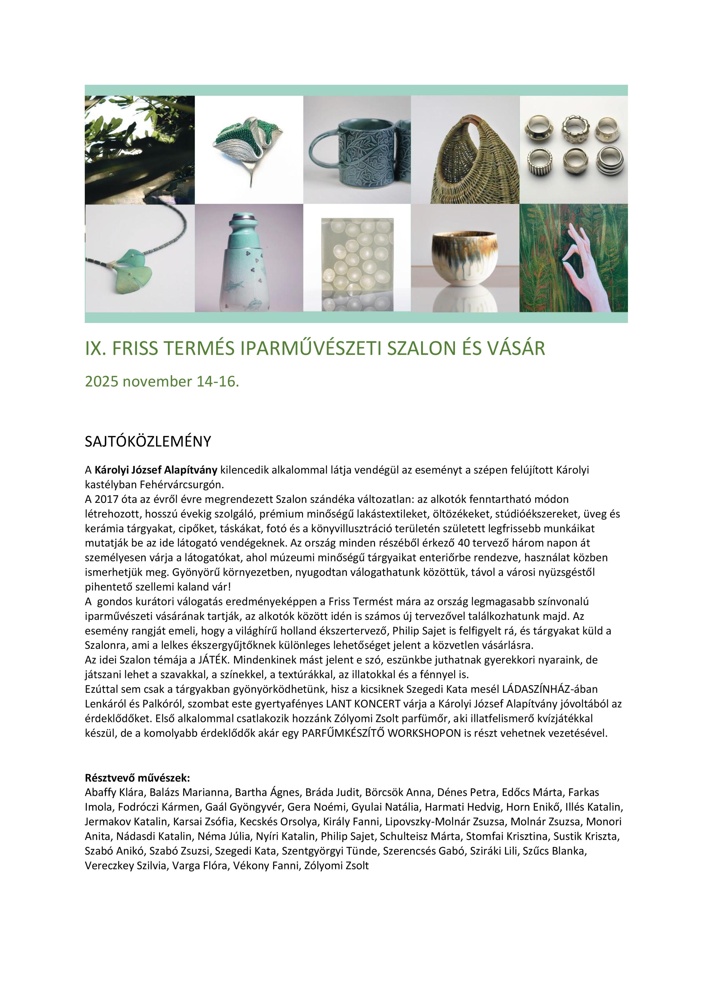 IX. Friss Termés Iparművészeti Szalon és Vásár