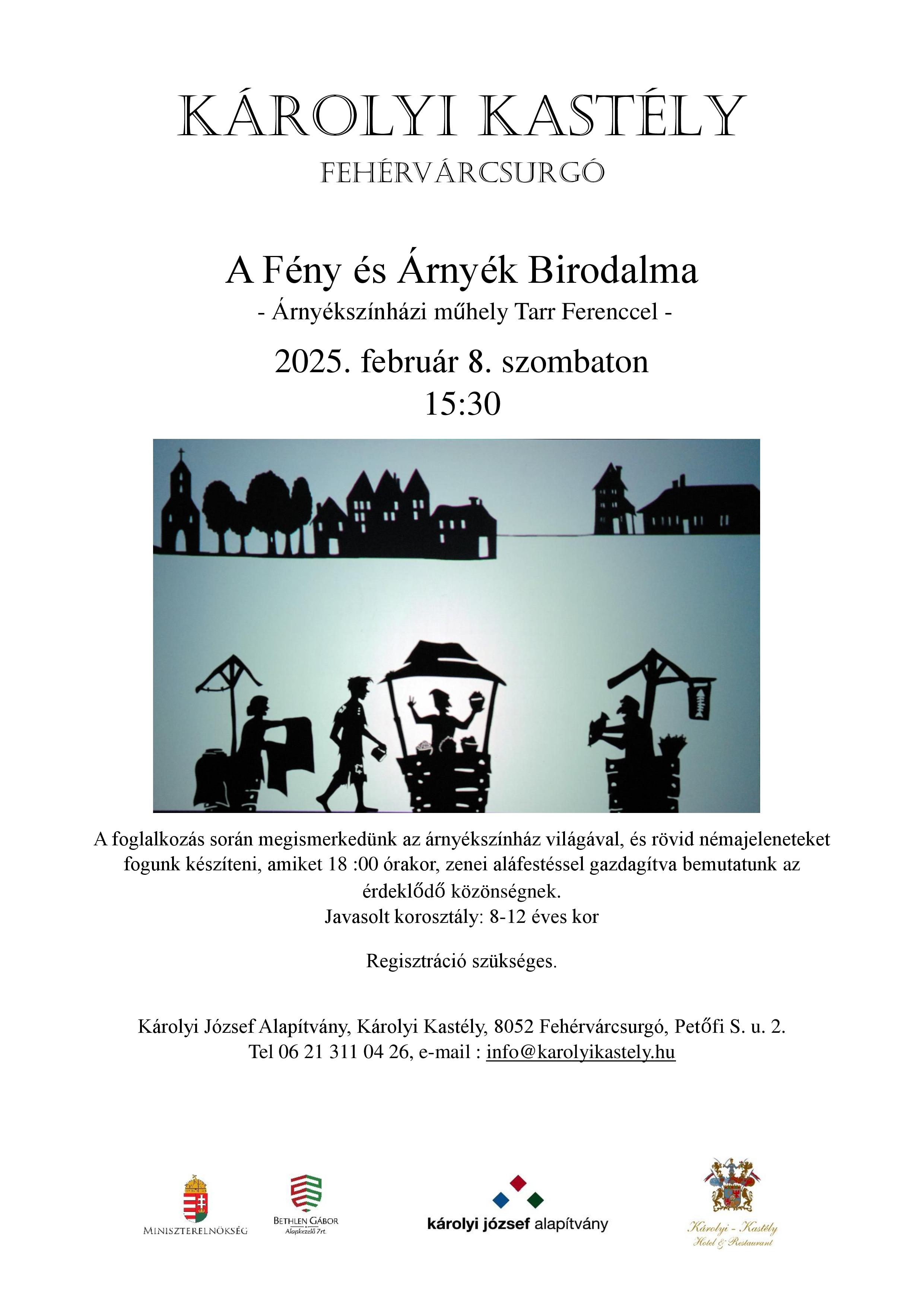 A Károlyi József Alapítvány örömmel mutatja be az árnyékszínház varázslatát és technikáját a gyerekeknek február 8-án, szombaton, 15:30 órakor a Károlyi Kastély Látogatóközpontban.